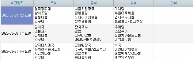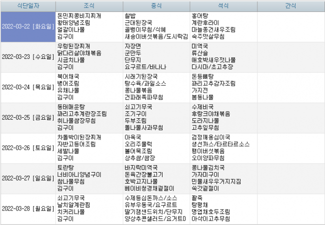 2022년 03월 식단안내