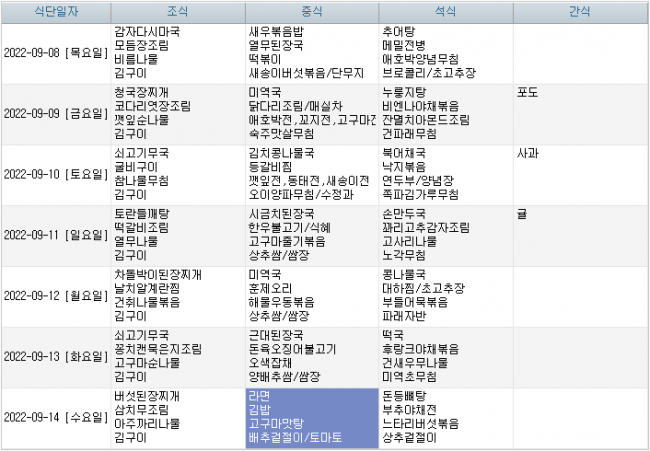 2022년 09월 식단안내