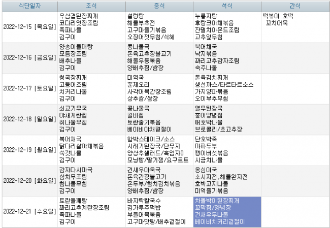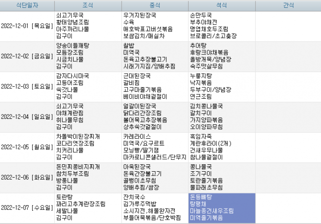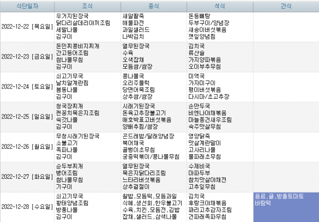 2022년 12월 식단안내