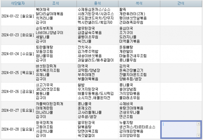 동태포-러시아 대하-국내산 포기김치(배추,고춧가루)-국내산 쌀(죽,밥,누룽지)-국내산