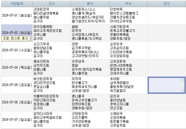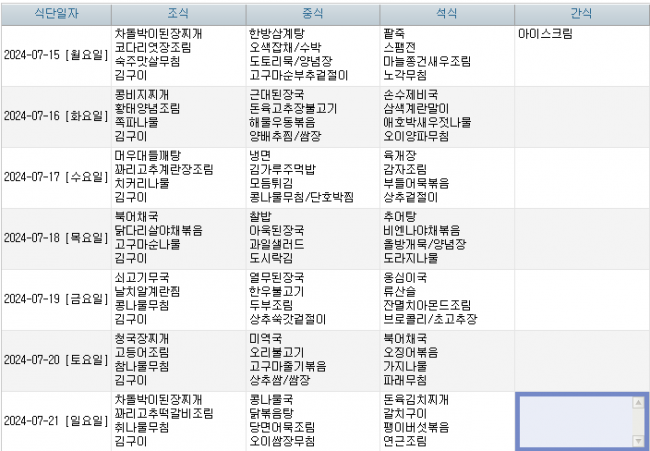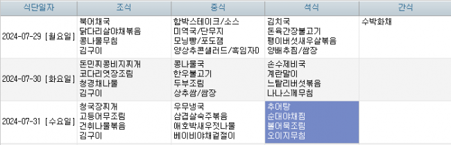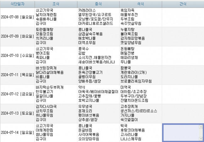 2024년 07월 주간식단표