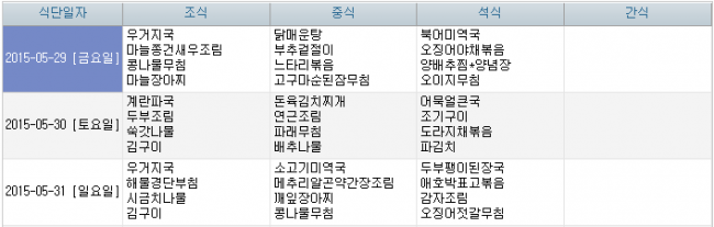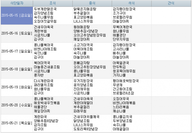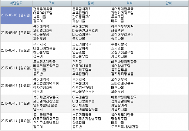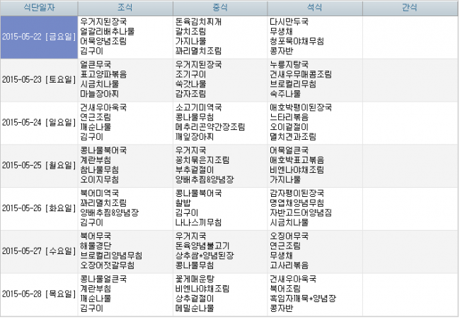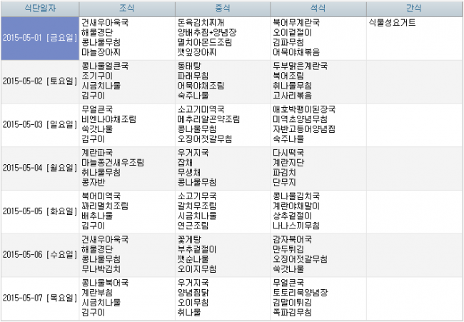 2015년 5월 식단안내
