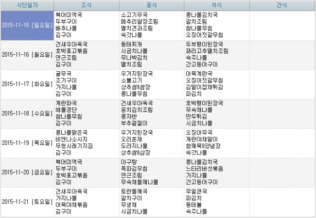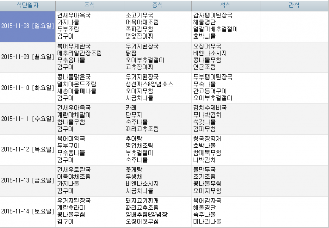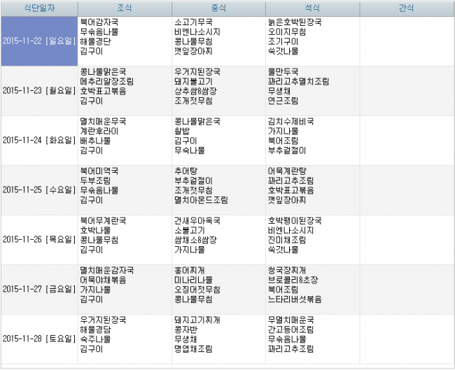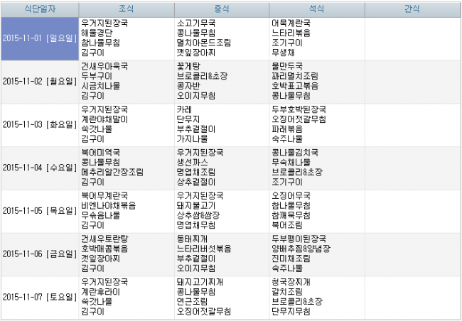 2015년 11월 식단안내