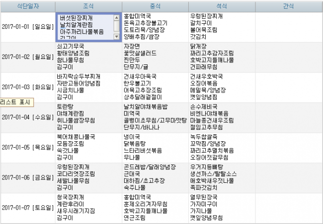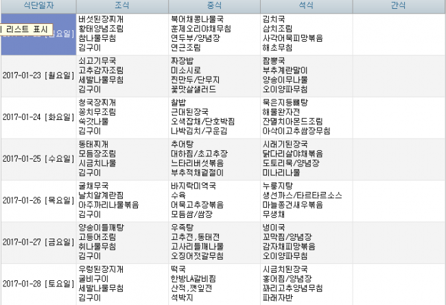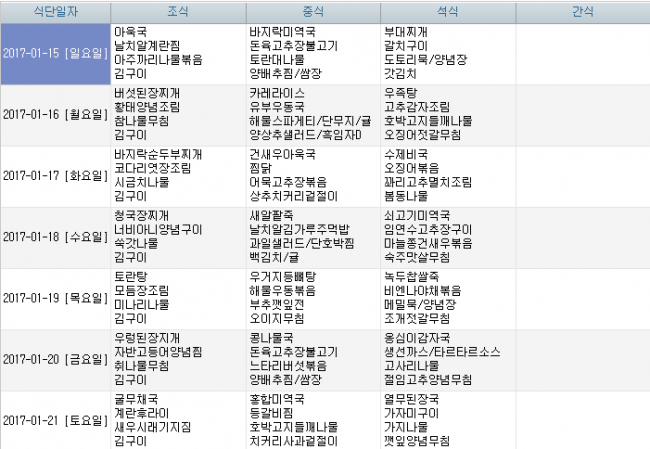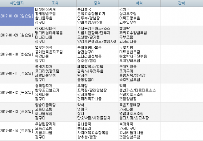 2017년 1월 식단안내 페이지 정보 작성자 신성양로원 댓글 0건 조회 1,833회 작성일 17-01-05 10:15 본문 1월 식단안내입니다. 목록 이전글2017년 2월 식단안내 17.01.30 다음글2016년 12월 식단안내 16.11.30