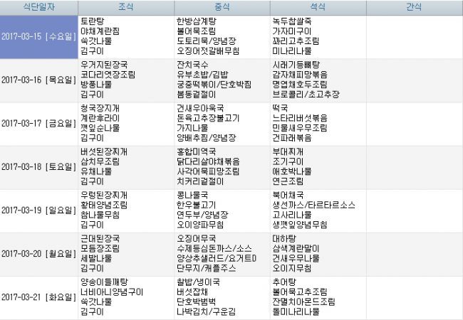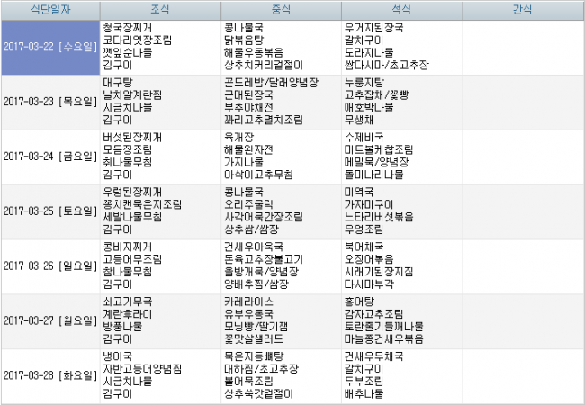 2017년 3월 식단안내 페이지 정보 작성자 신성양로원 댓글 0건 조회 1,875회 작성일 17-03-01 13:41 본문 3월 식단표 입니다. 목록 이전글2017년 04월 식단안내 17.03.29 다음글2017년 2월 식단안내 17.01.30