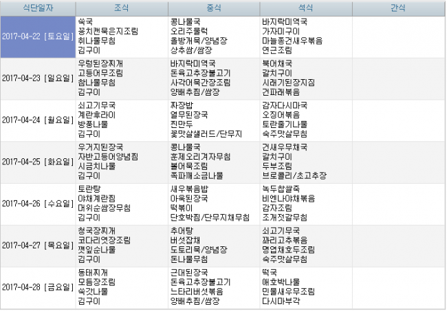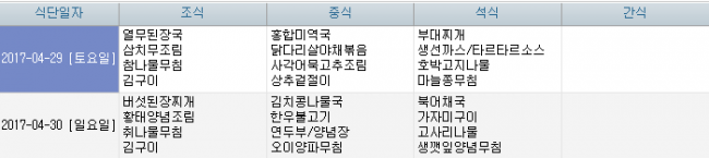 2017년 04월 식단안내 페이지 정보 작성자 신성양로원 댓글 0건 조회 1,758회 작성일 17-03-29 08:19 본문 4월 식단입니다. 목록 이전글2017년 5월 식단안내 17.04.25 다음글2017년 3월 식단안내 17.03.01