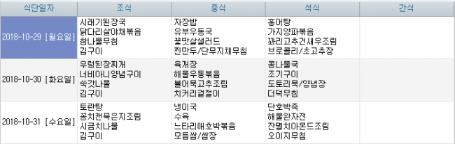 2018년 10월 주간식단표 페이지 정보 작성자 신성양로원 댓글 0건 조회 1,841회 작성일 18-10-01 14:27 본문 후원물품 및 시장사정에 의해 식단이 변경될 수 있습니다. 목록 이전글2018년 11월 식단안내 18.10.29 다음글2018년 09월 식단안내 18.08.31