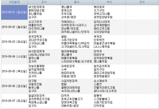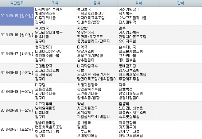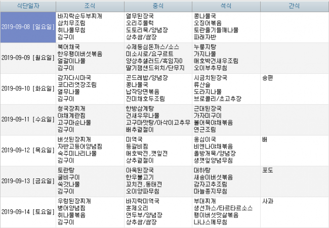 2019년 9월 식단안내 페이지 정보 작성자 신성양로원 댓글 0건 조회 2,015회 작성일 19-08-26 15:30 본문 주간 식단표입니다. 목록 이전글2019년 10월 식단안내 19.09.30 다음글2019년 8월 식단안내 19.07.29
