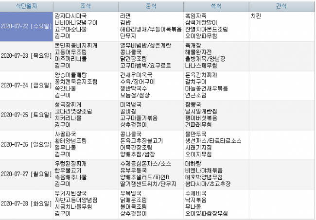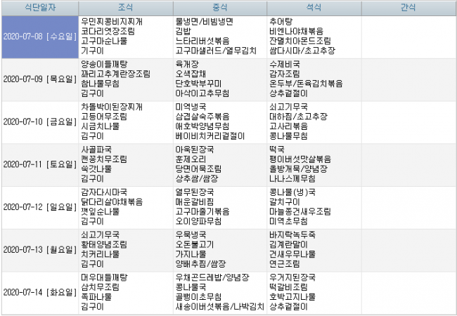 2020년 07년 식단안내 페이지 정보 작성자 신성양로원 댓글 0건 조회 1,968회 작성일 20-06-29 09:43 본문 7월 주간식단표입니다. 목록 이전글2020년 08월 식단안내 20.07.27 다음글2020년 06월 식단안내 20.05.28