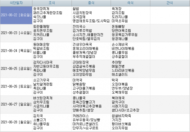 2021년 06월 식단안내 페이지 정보 작성자 신성양로원 댓글 0건 조회 1,536회 작성일 21-05-31 09:38 본문 주간식단표입니다. 목록 이전글2021년 07월 식단안내 21.06.23 다음글2021년 05월 식단안내 21.05.03