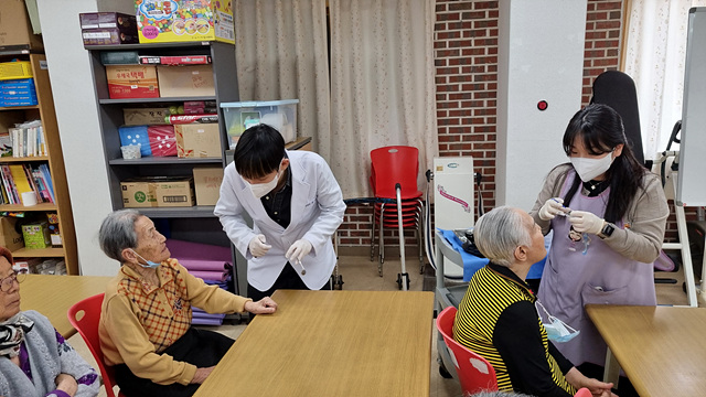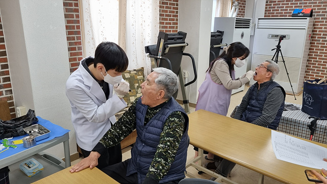어르신들께서 보건소에서 실시하는 구강 검진을 받으셨습니다.