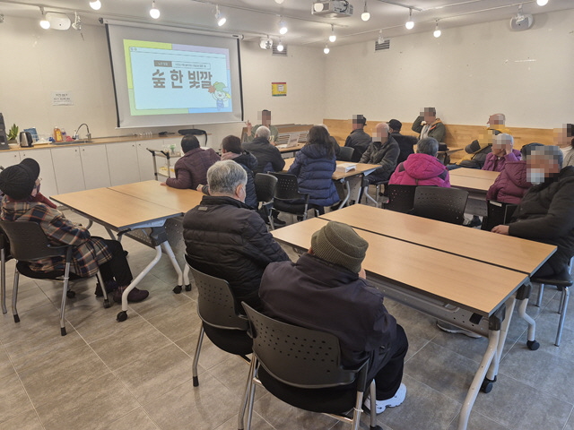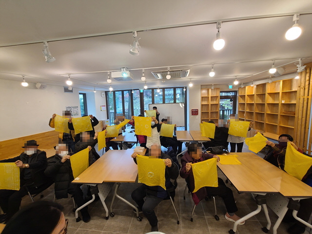 어르신들은 나주숲체원에서 '숲 한 빛깔' 이란 주제의 천연 염색 체험 활동과 산림치유 지도자가 진행하는 건강숲 테라피 활동을 하시고