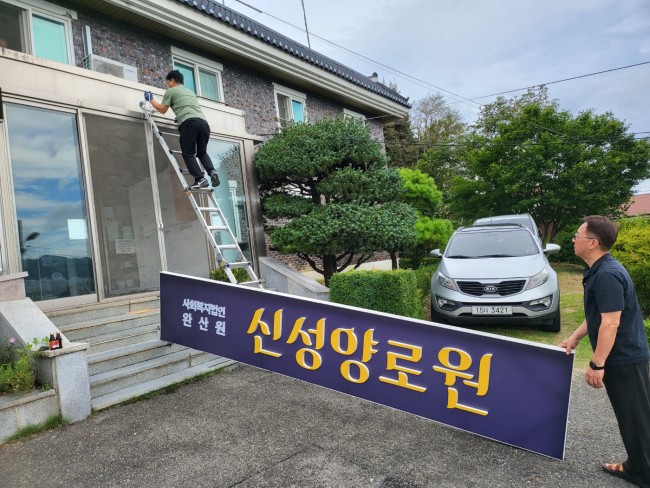 신성양로원 간판 교체