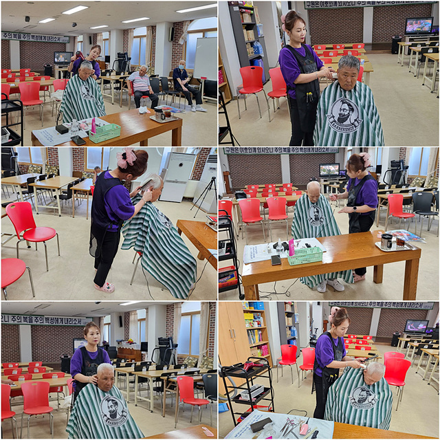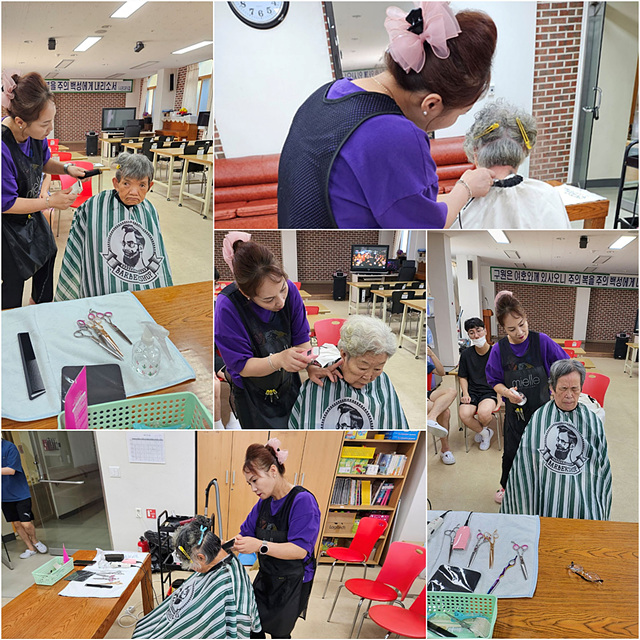 자원봉사자 선생님이 어르신들께 이미용 서비스를 해주셨습니다.