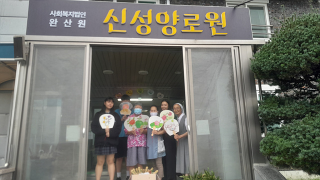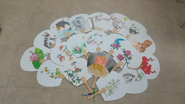 우리 시설 어르신들을 위해 예쁜 그림을 직접 그려서 만든 아름다운 한지 부채를 선물해 준