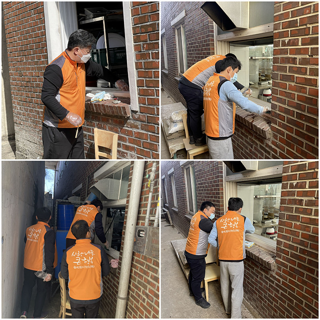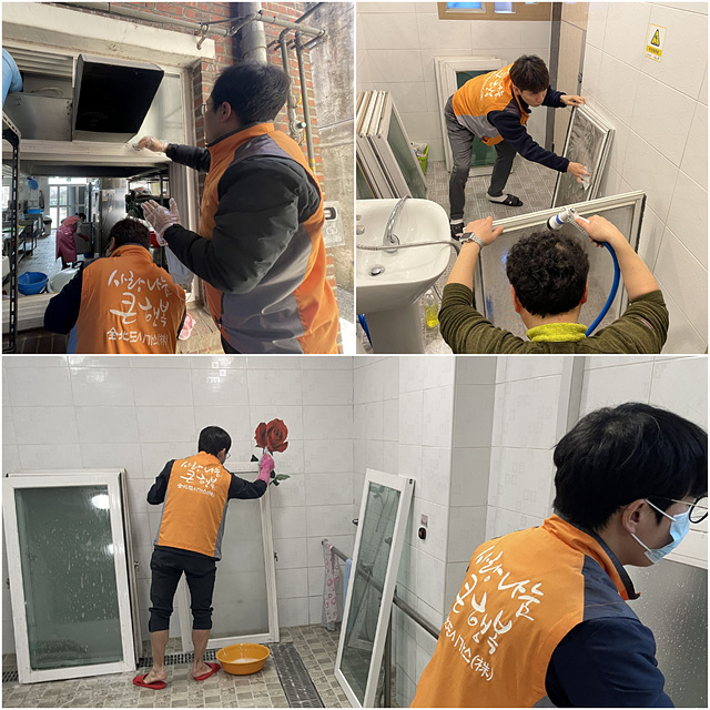 전북도시가스 직원 분들의 수고로 식당과 공용화장실의 창문이 깨끗해졌습니다.