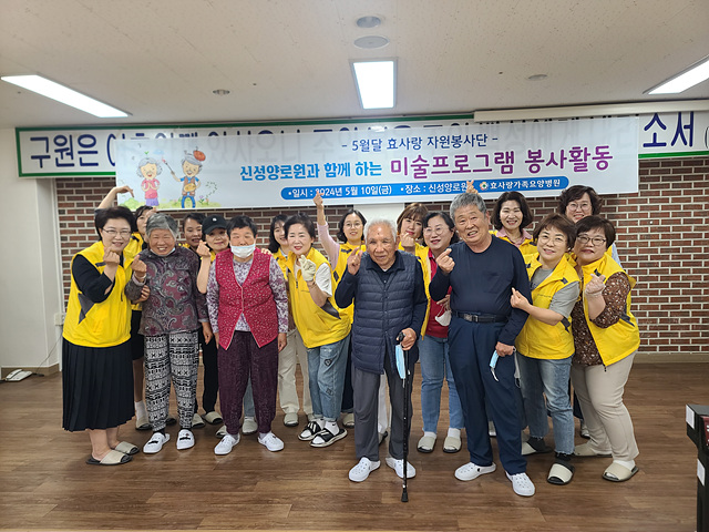 우리 어르신들께 행복하고 즐거운 시간을 만들어 주신 효사랑가족요양병원 자원봉사자분들께