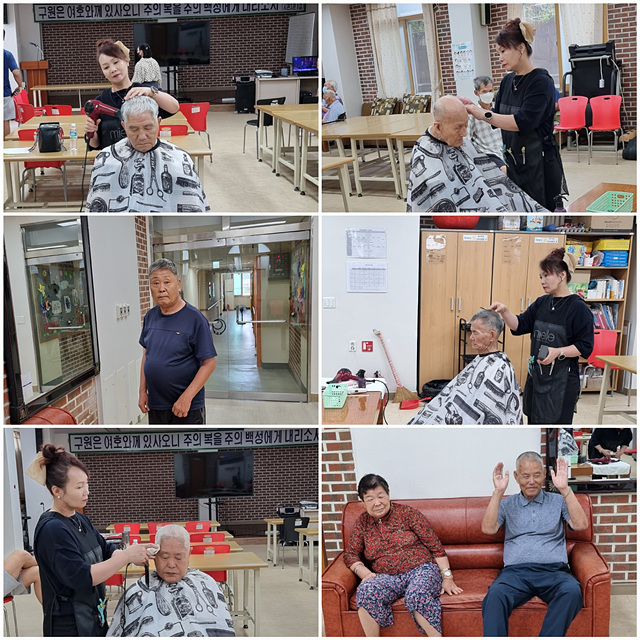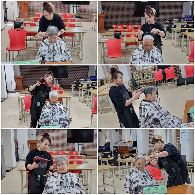 자원봉사자 선생님이 어르신들께 이미용 서비스를 해주셨습니다.