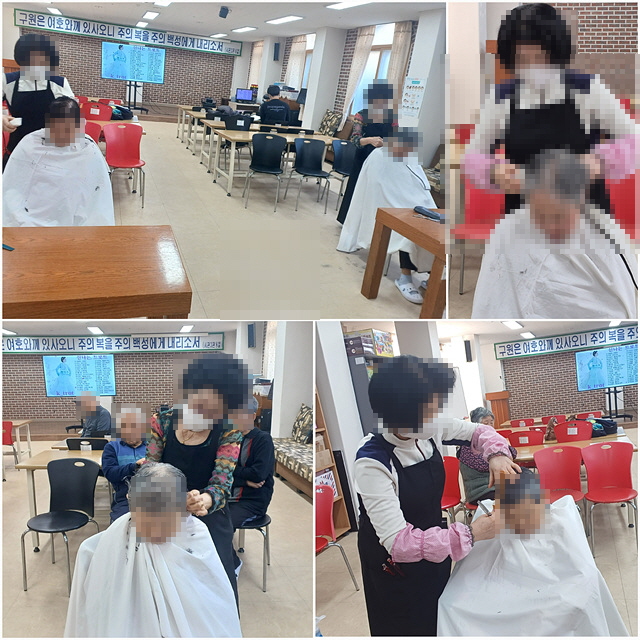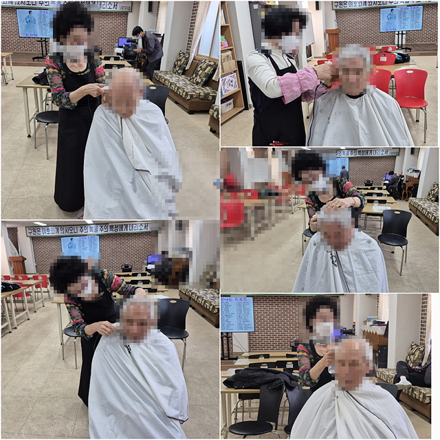 어르신들이 자원봉사자 분들로부터 이미용 서비스를 받으셨습니다.