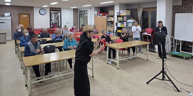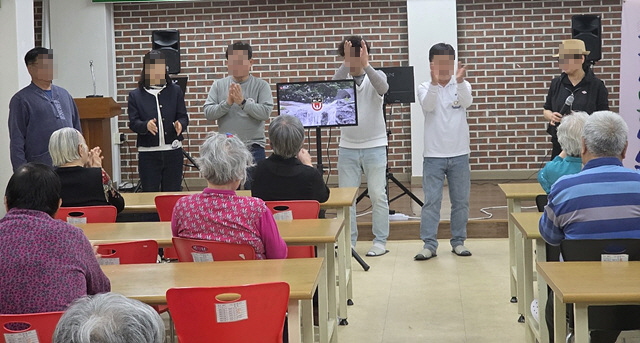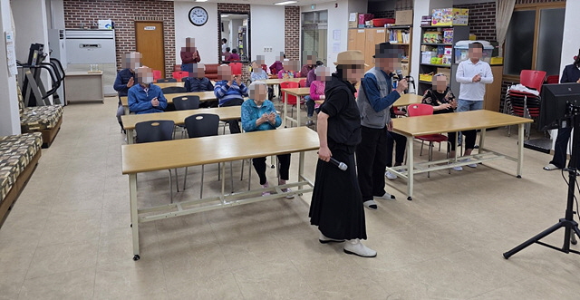 어르신들은 색소폰, 기타 등 악기 연주를 감상하시고 단원들과 함께 하는 노래 부르기 시간도