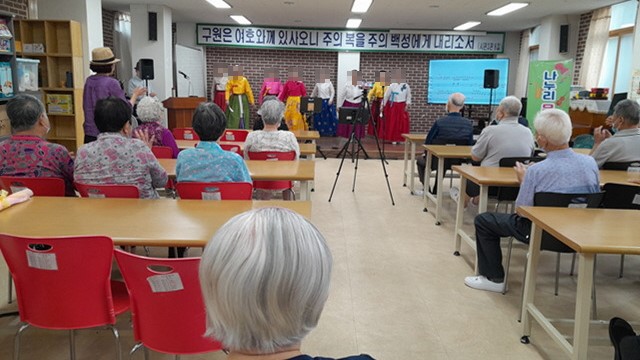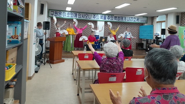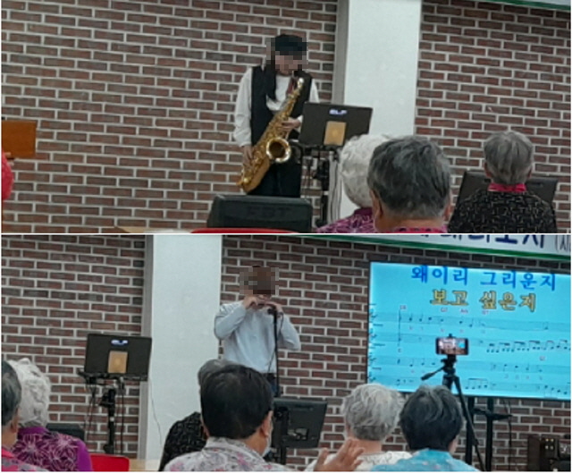 어르신들은 민요와 전통 가요, 색소폰과 하모니카 연주를 감상하시며 즐거운 시간을 보내셨습니다.