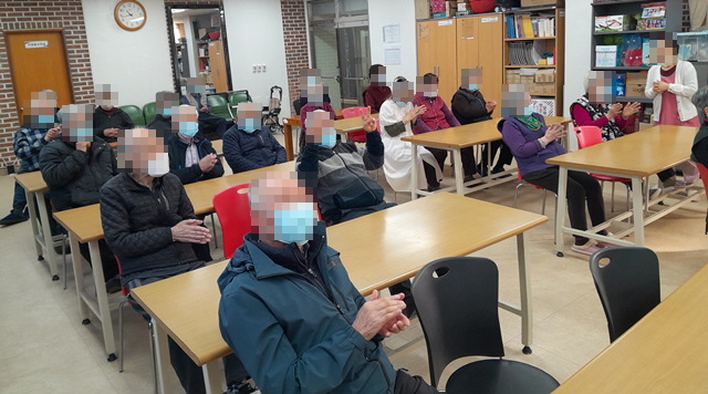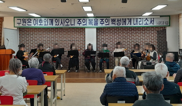 어르신들은 잔잔하면서도 선명한 음색의 만돌린 연주를 편안하게 감상하시며 친숙한 노래가 연주 될 때에는