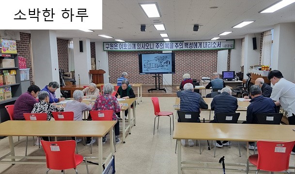 2024년 11월 프로그램 페이지 정보 작성자 신성양로원 작성일 24-12-02 00:30 목록 본문 2024년 11월의 다양한 프로그램 이전글2024년 12월 프로그램 25.01.02 다음글2024년 10월 프로그램 24.11.02