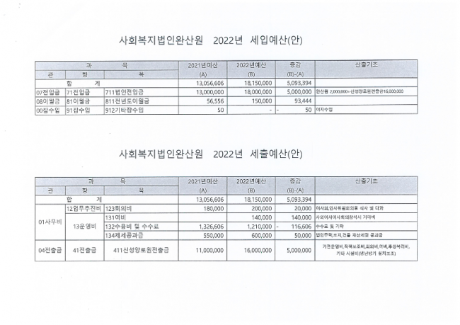 완산원 2022년 세입.세출 예산 페이지 정보 작성자 신성양로원 댓글 0건 조회 1,722회 작성일 21-12-16 15:23 본문 완산원 2022년 세입.세출 예산 목록 이전글완산원 2021년 총괄세입.세출 결산서 22.02.14 다음글완산원 2021년 세입.세출 추경예산 21.12.16