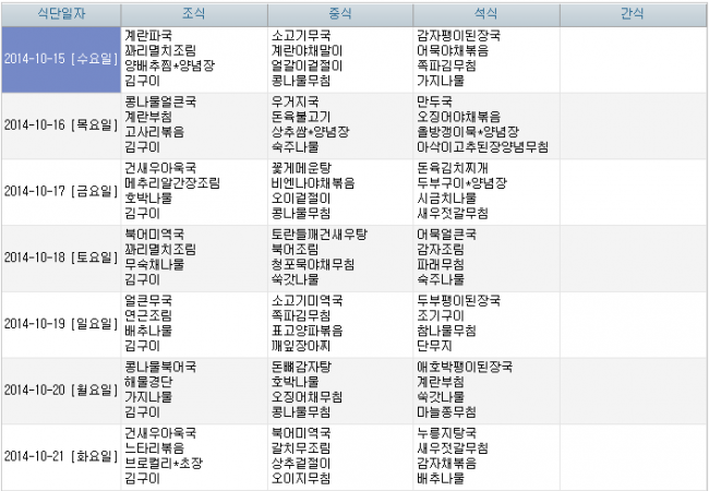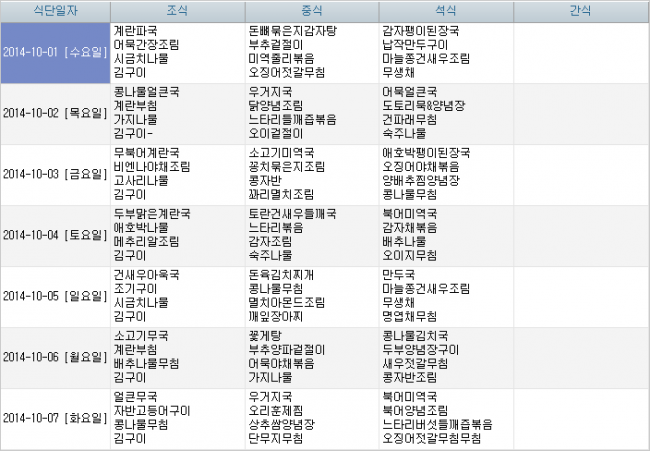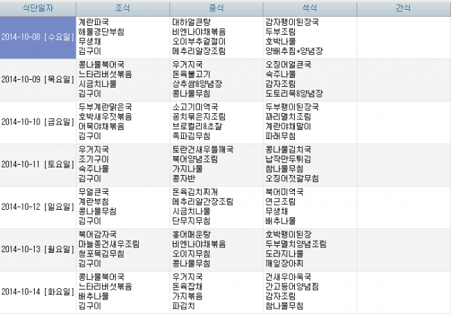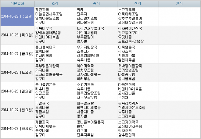 * 식단은 상황에 따라 달라질 수 있습니다.