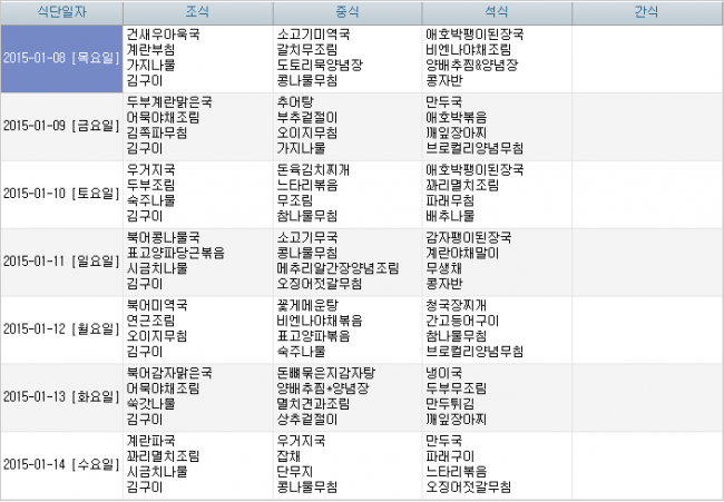 * 식단은 상황에 따라 달라질 수 있습니다.