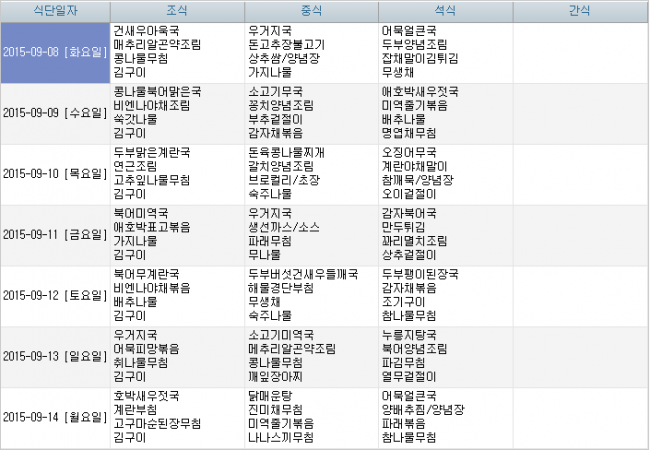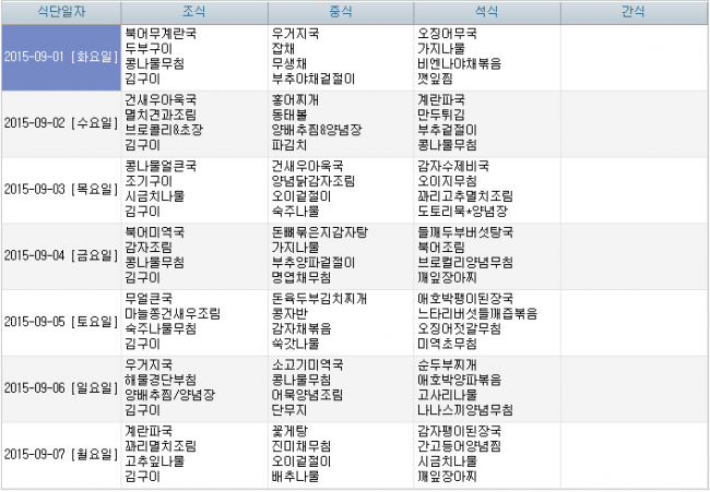 * 식단은 상황에 따라 달라질 수 있습니다.