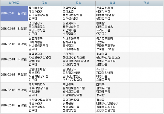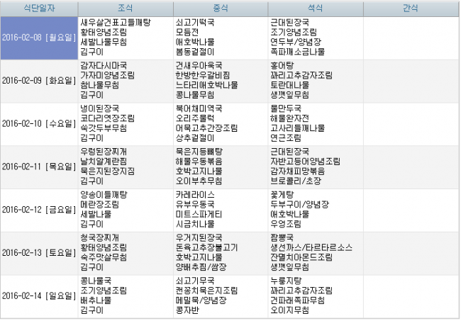 2016년 2월 식단 안내 페이지 정보 작성자 신성양로원 댓글 0건 조회 1,686회 작성일 16-01-29 12:26 본문 2016년 2월 식단입니다. 목록 이전글2016년 3월 식단안내 16.02.18 다음글2016년 1월 식단안내 16.01.02