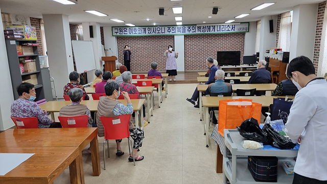 어르신들께서 보건소에서 실시하는 구강 검진을 받으셨습니다.