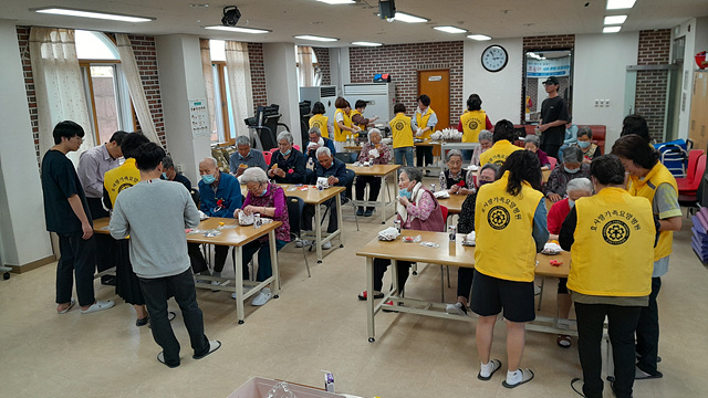 우리 어르신들께 행복하고 즐거운 시간을 만들어 주신 효사랑가족요양병원 자원봉사자분들께