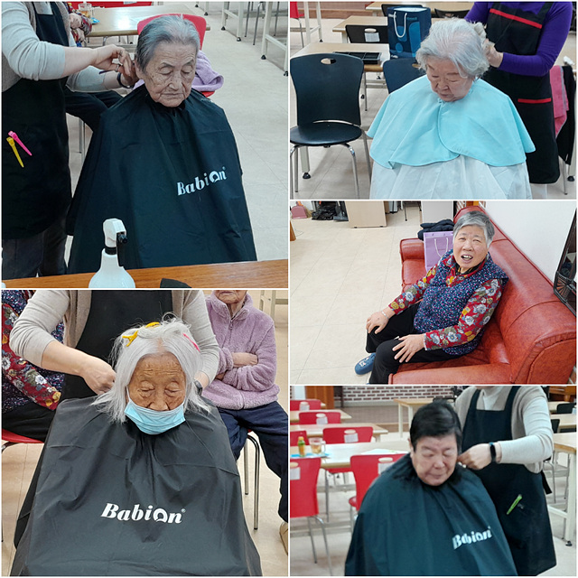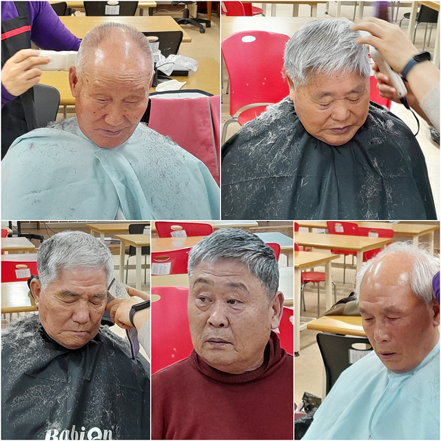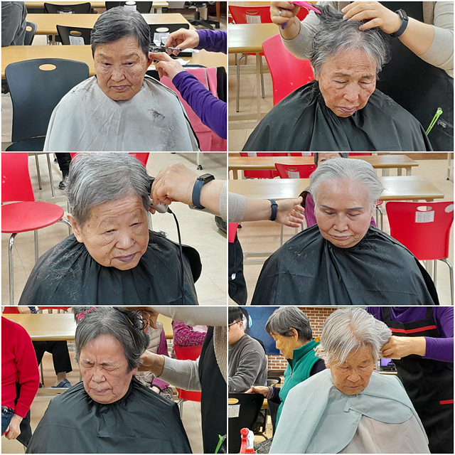 어르신들께 이미용 서비스를 해드렸습니다.